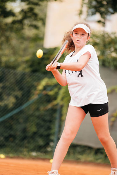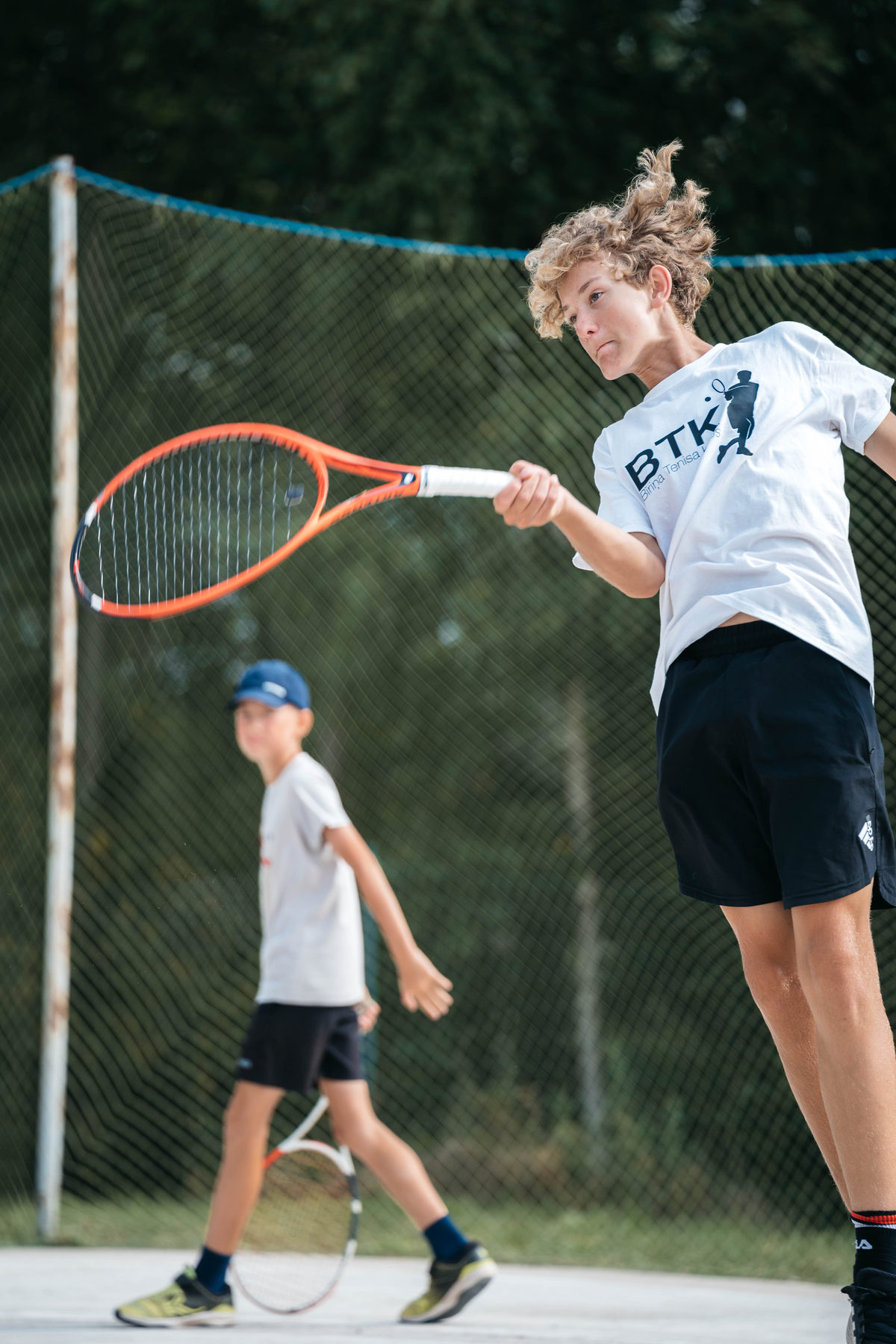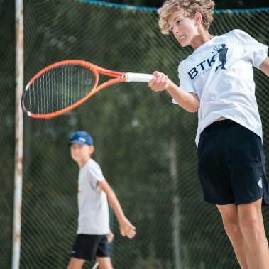 Pamatā sitieni tiek iedalīti divos veidos – forehand un backhand. Latviskojot tas visprecīzāk būtu sitiens no ērtās un neērtās puses. Tā kā lielākā daļa tenisistu ir labroči, tad vairumā gadījumu forehand ir sitiens no labās puses, bet backhand no kreisās. Forehand sitiens lielākajā daļā gadījumu tiek sists ar vienu roku, bet backhand sitienu izpilda ar vienu vai abām rokām. Volley ir sitiens no gaisa pirms bumbiņa pieskaras zemei, Smash vai smešs arī ir sitiens no gaisa, taču ar strauju lejupejošu trajektoriju (līdzīgi kā gremde volejbolā). Lob (latviski nereti izmantots termins „svecīte”) ir efektīvs sitiens no aizsardzības pozīcijas – ja pretinieks ir izgājis tuvu tīklam, tad ir iespēja pārcelt bumbiņu viņam pāri. Skaists sitiens no skatītāju viedokļa ir arī Drop shot vai čops. Tas ir noīsinātais sitiens, pēc kura bumbiņa piezemējas ļoti tuvu tīklam.